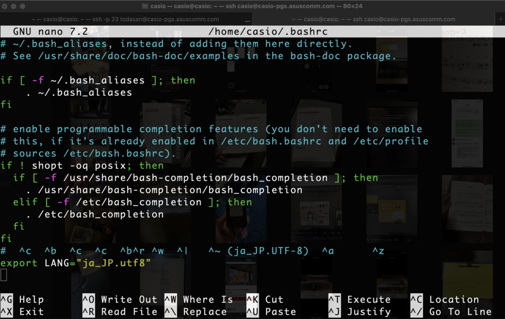 ~/.bashrc)に、LANG環境変数を設定する行を追加する。nano ~/.bashrc