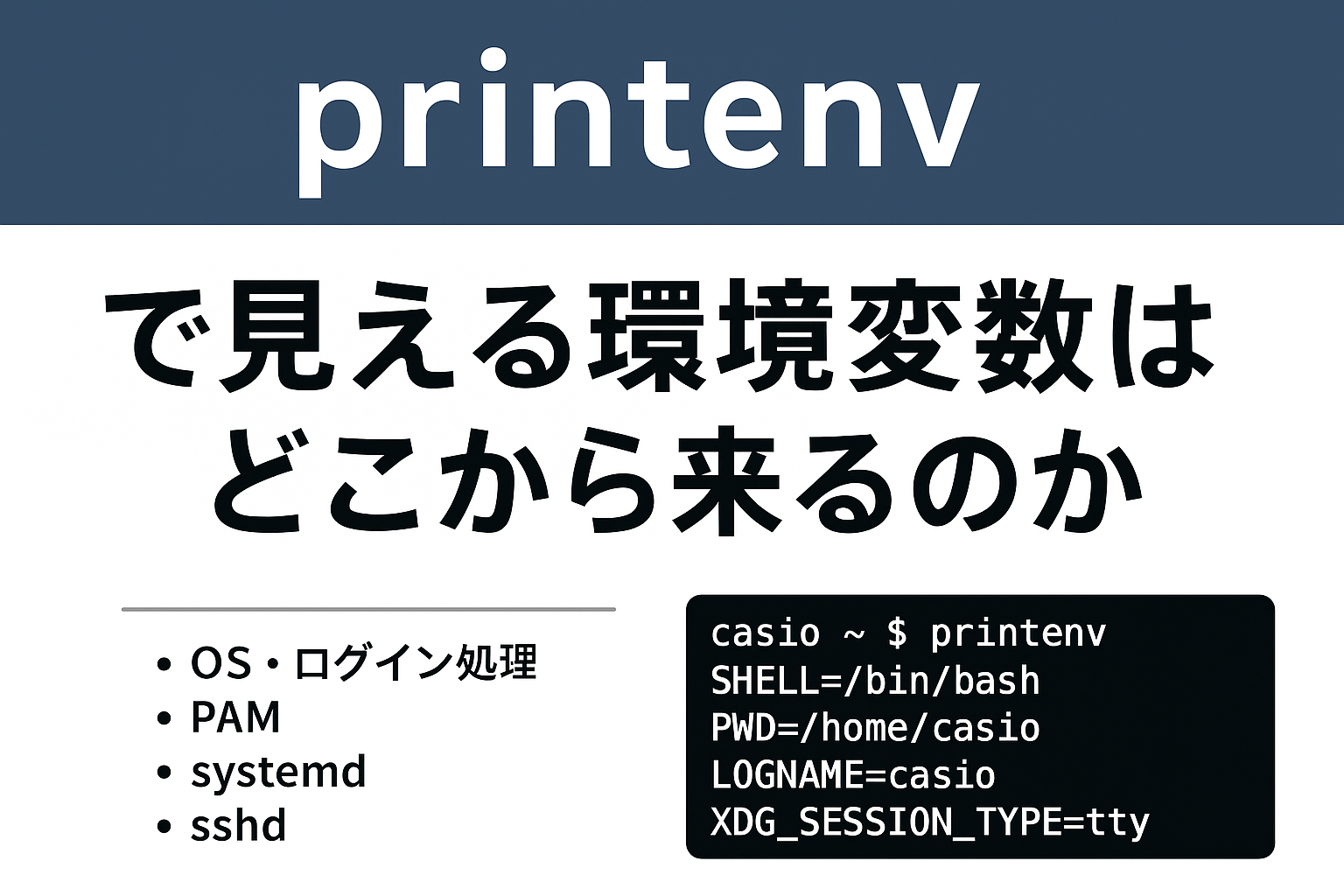 • printenv は「現在の bash プロセス」を覗いている