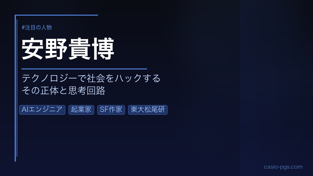 安野氏は「AIエンジニア」「起業家」「SF作家」という、一見バラバラに見える3つの顔を持つ人物です。