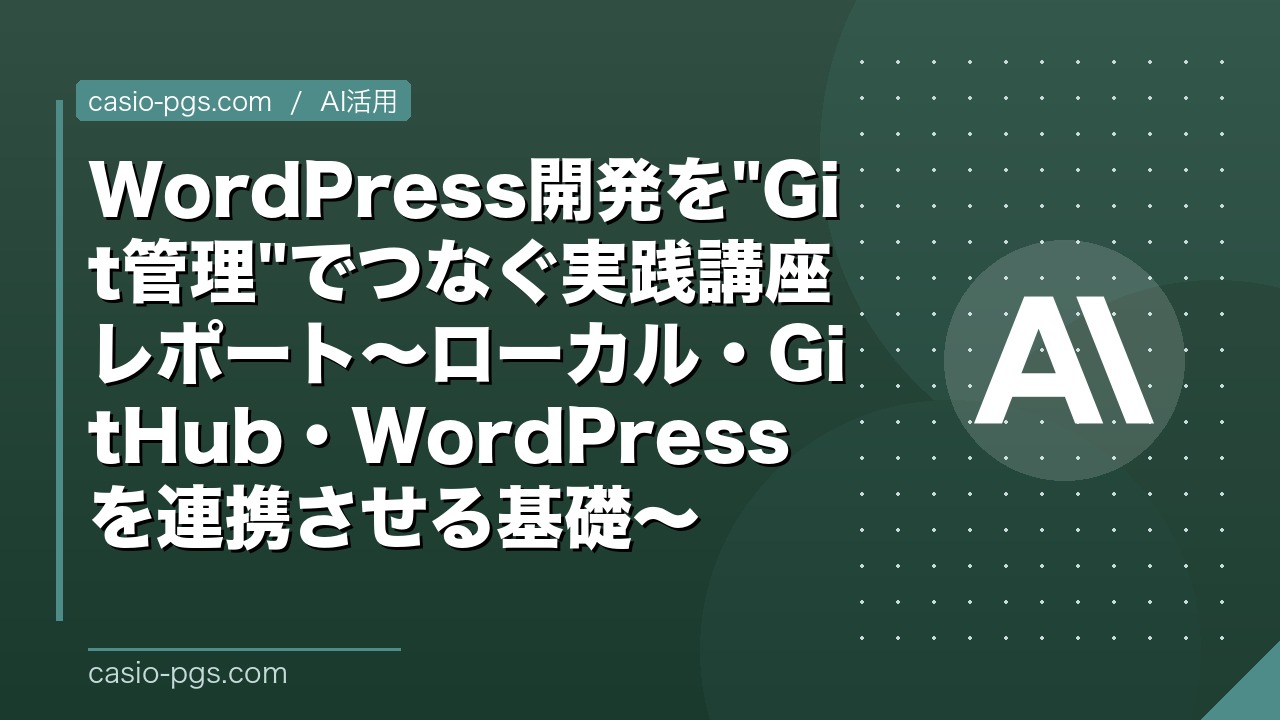 今回のレッスンでは、現場でも必須のバージョン管理ツール「Git/GitHub」の基礎セットアップと、WordPressの核心である「WPループ」の仕組みを学びました。