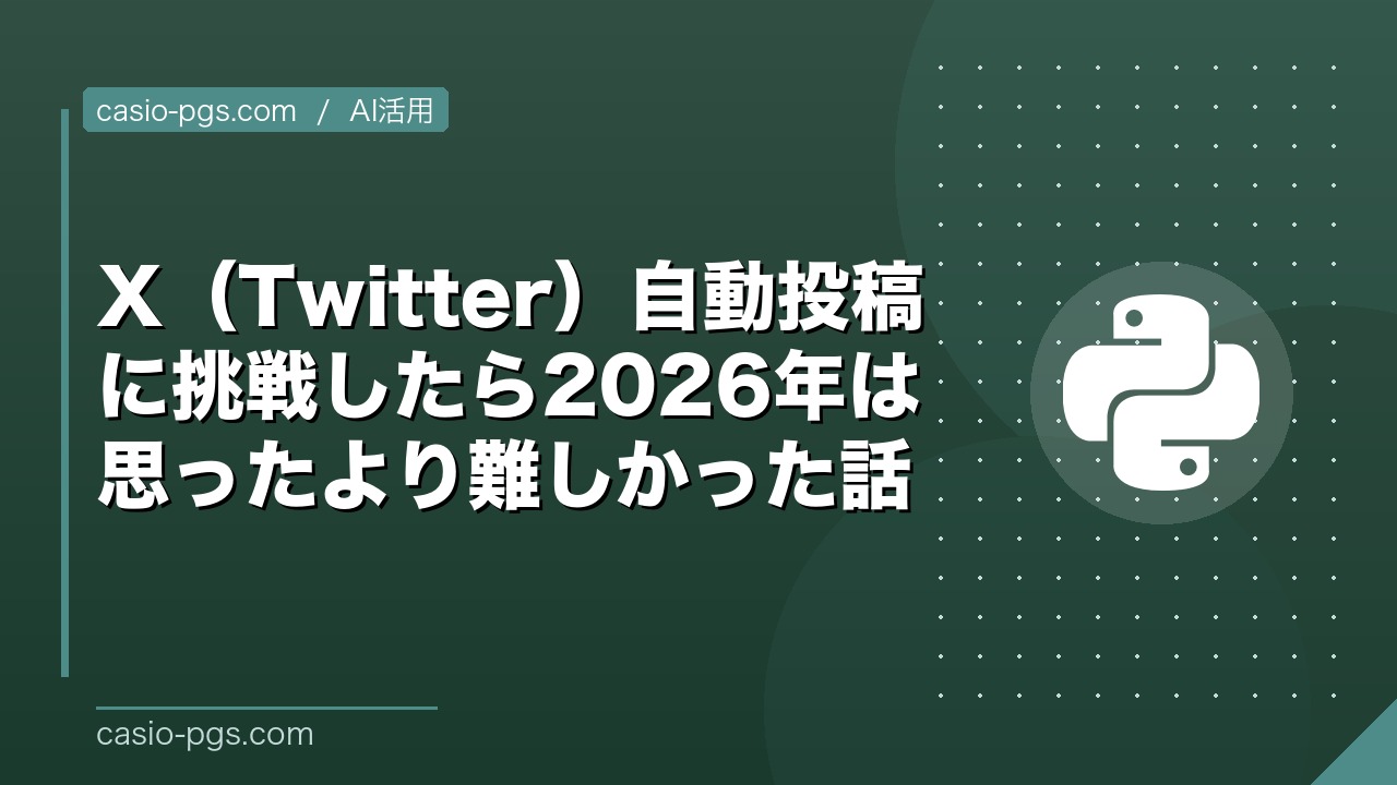 WordPressへの記事投稿は自動化できているのに、Xへの同時投稿もできないかと挑戦してみました。結論から言うと、2026年現在はかなり難しい状況になっていました。
